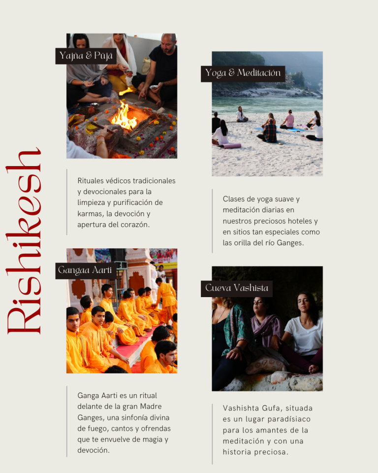 Situada a los pies de los Himalayas y muy cerca del nacimiento del río Ganges, fue escogida por grandes yogis y sabios para sus prácticas espirituales, las cuales siguen vivas hoy en día.