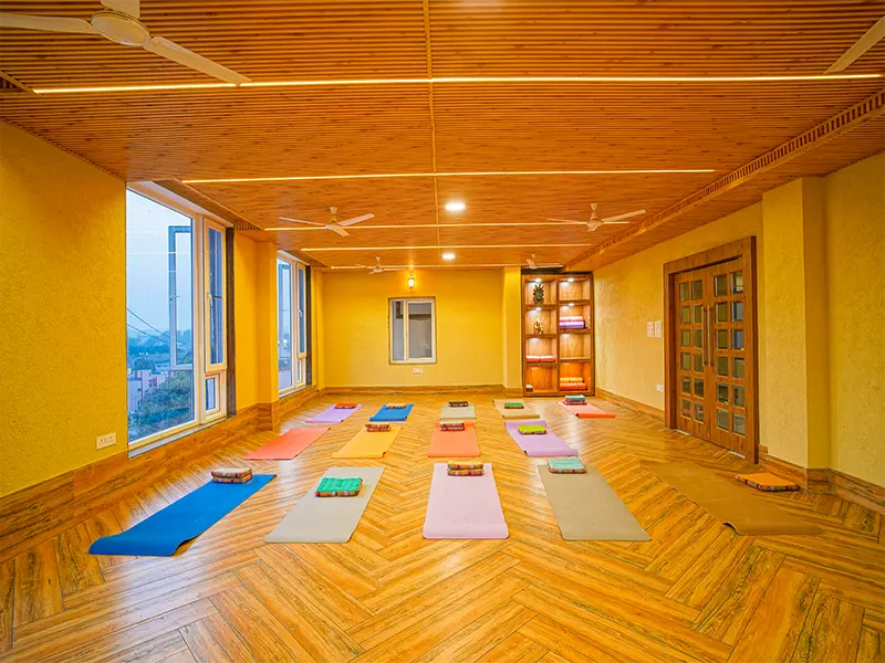 En Rishikesh, nuestro refugio se encuentra a pocos pasos del sagrado río Ganga. Un espacio íntimo y rodeado de naturaleza, donde el sonido del agua y las montañas del Himalaya acompañan nuestras prácticas diarias. Cada habitación combina diseño contemporáneo con detalles artesanales locales, creando un ambiente sereno y acogedor que invita al descanso y a la introspección.